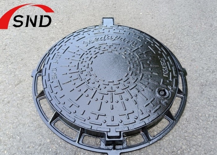 Pokrycie otworu wodnego z żelaza elastycznego wykonana jest z kulistego żelaza odlewanego z grafitem poprzez obróbkę ręczną, z solidną górą, wgnieconą, podwójnym trójkątem, pojedynczym lub podwójnym uszczelnieniem, kwadratowym lub prostokątnym lub okrągłym, z zawiasem lub bez niego.Bardzo dobra jakość, gładki i wolny od otworów piaskowych, otworów dmuchowych, zniekształceń lub innych wad. Pojemność ładunkowa wynosi 40 ton.może również zrobić powłokę epoksydową zgodnie z wymaganiami klienta.